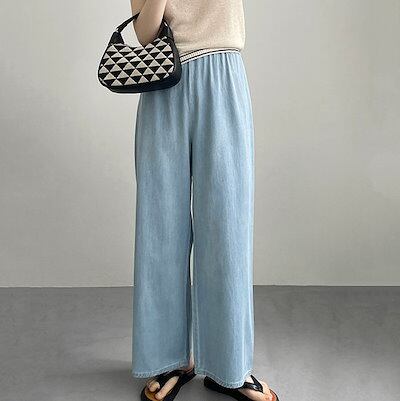 デニム パンツ レディース ストレートパンツ 綿 ジーンズ ボトムス ゆったり ワイドパンツ ストレート ワイド ロング ズボン デニムパンツ ボトムス 体型カバー 大きいサイズ リラックス シンプル