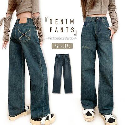デニム ワイドパンツ レディース ストレートワイドパンツ デニム パンツ ジーパン ボトムス ワイドルーズ デニム パンツ 長ズボン ジーンズ 大人カジュアル ハイウエスト 柔らか 着?せ ゆったり