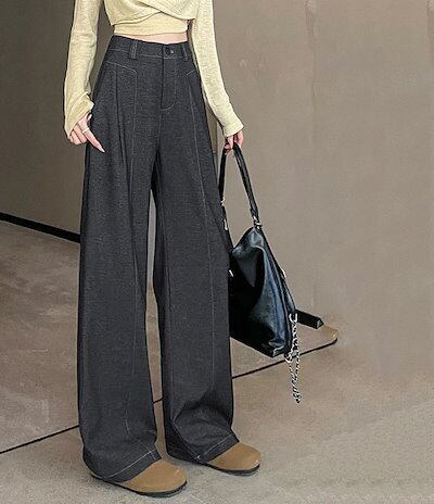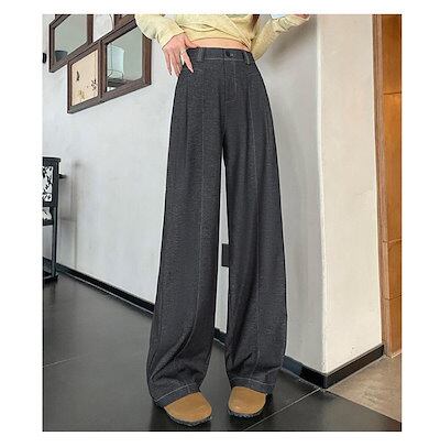 デニムパンツ レディース ワイドパンツ ストレート デニム ワイド パンツ ジーパン 長ズボン ジーンズ ボトムス ウエストゴム 大人 カジュアル 着?せ ゆったり 体型カバー オシャレ 柔らか 落ち