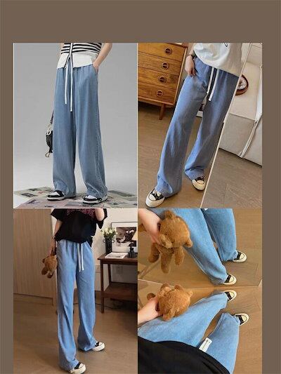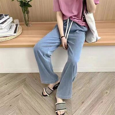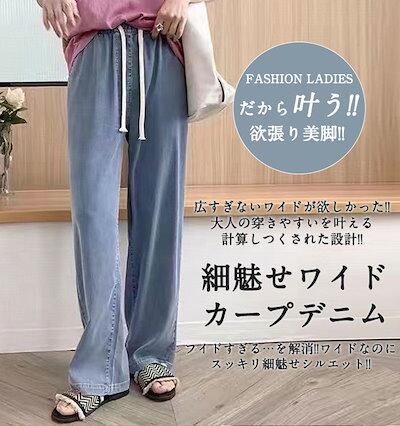 デニムパンツ レディース ワイドパンツ ウエストゴム デニム 接触冷感 春 夏 ひんやり UVカット 無地 薄手 涼しい ロング丈 ストレートパンツ ジーンズ 体型カバー ボトムス ズボン ゆったり