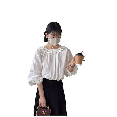 春秋 バットスリーブ ラッフル レース シャツ レディース ブラウス 蝶ネクタイ シック デザイン トップス 韓国ファッション