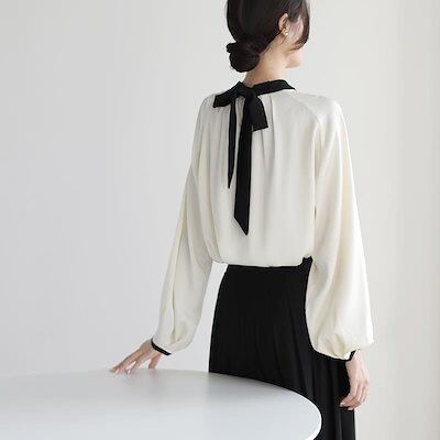 ニッチ 優しい 気質 蝶ネクタイ シャツ レディース 2025 春秋 新作 パッチワーク 襟 バック レース プルオーバー トップス 韓国ファッション
