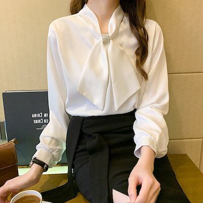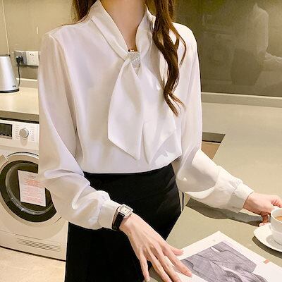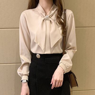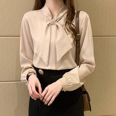 リボン 2025 春 蝶ネクタイ 長袖 シャツ レディース ブラウス