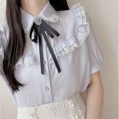リボン レース 蝶ネクタイ シャツ レディース 無地 半袖 シャツ