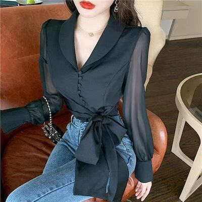レディースシャツ秋フレンチシックなデザイン感小人数シフォンシャツリボンホワイト雰囲気トップス
