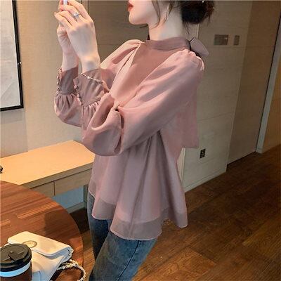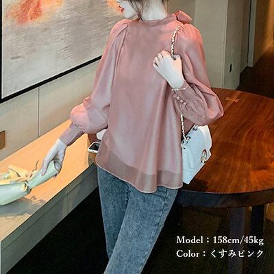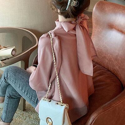 【本日限定】気質 韓国ファッション 長袖シャツ バックリボンシフォンブラウス レディース