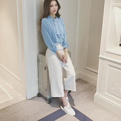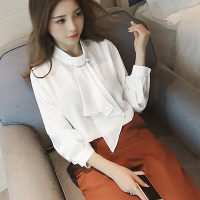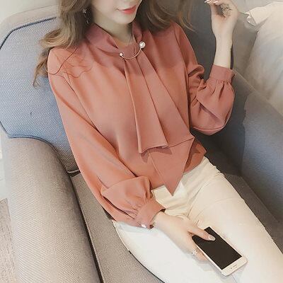 【本日限定】気質 韓国ファッション 長袖シャツ シャツブラウス リボン 長袖 レディース