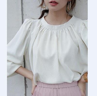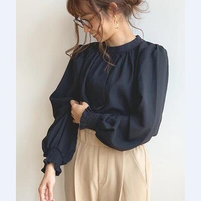 ブラウス 今っぽシアーシャツ レディース 長袖 入学式 オケージョン オフィス ハイネック スタンドカラー リボン ハイネックバルーンスリーブ