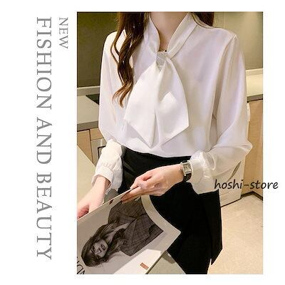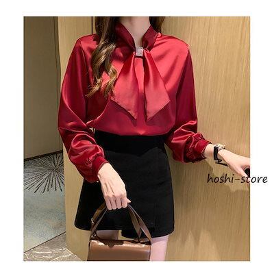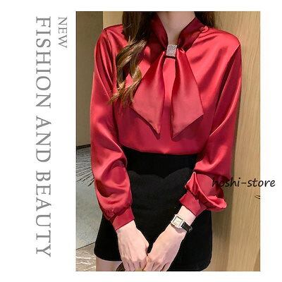 【新作入荷】気質 長袖シャツ ブラウス レディース きれいめ 40代 春秋新作 オシャレブラウス シルク風シャツ 長袖トップス リボンVネックブラウス 大人 通勤 ゆったり シャツ30代 50代