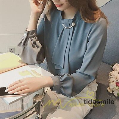 【新作入荷】気質 長袖シャツ 長袖ブラウス レディース 秋物 シャツレディース ブラウスシャツ オフィス シフォンブラウス 30代40代50代 リボン フリル トップス 4色 白ブラウス OL