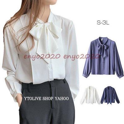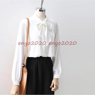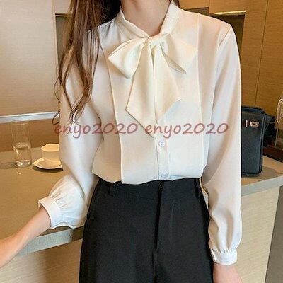 【新作入荷】気質 長袖シャツ ブラウス レディース トップス シャツ シフォン 長袖 リボン リボンタイシフォンブラウス