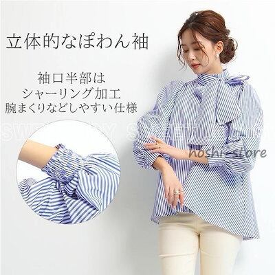 【新作入荷】気質 長袖シャツ ブラウス レディース長袖 パフスリーブ ノーカラー ハイネック リボン フォーマル 春夏 パフスリーブリボンフレアブラウス 結婚式 母の日 シフォン