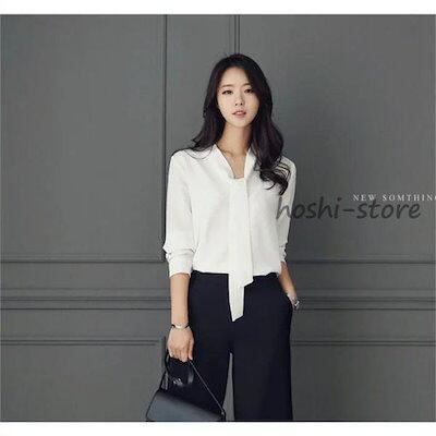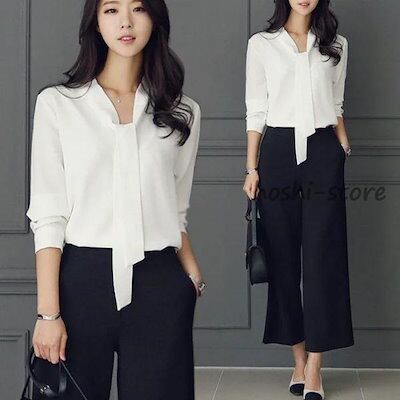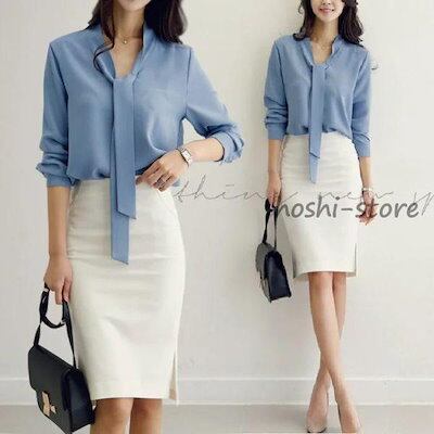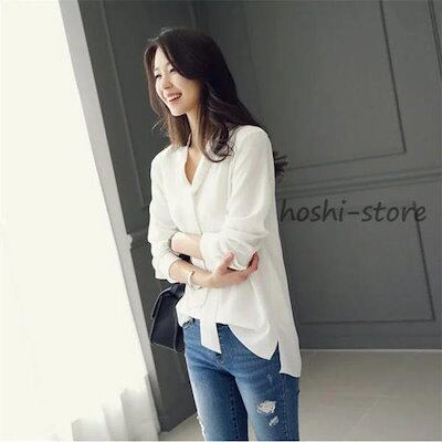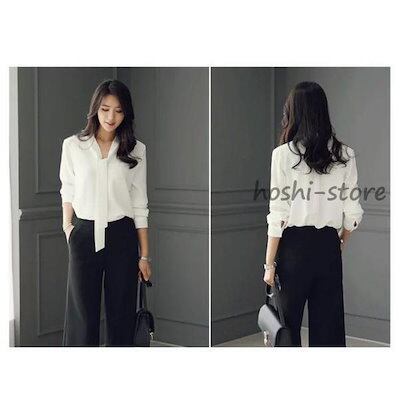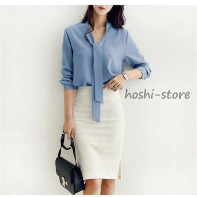 【新作入荷】気質 長袖シャツ ボウタイブラウス 長袖ブラウス ボウタイ リボン ブラウス 白ブラウス レディース プルオーバー 長袖シャツ Vネック フォーマル オフィス カジュアル きれいめ