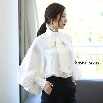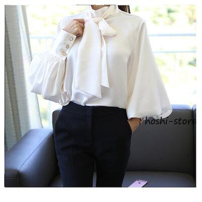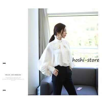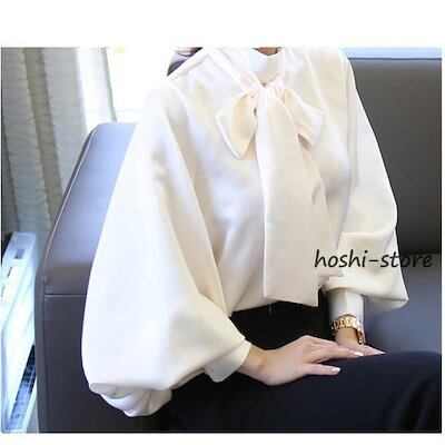 【新作入荷】気質 長袖シャツ ブラウス レディース オフィス フォーマル 40代 秋 おしゃれ 白ブラウス パフスリーブ シフォン 長袖シャツ リボン 韓国風 トップス 通勤 大人 ゆったり 2色