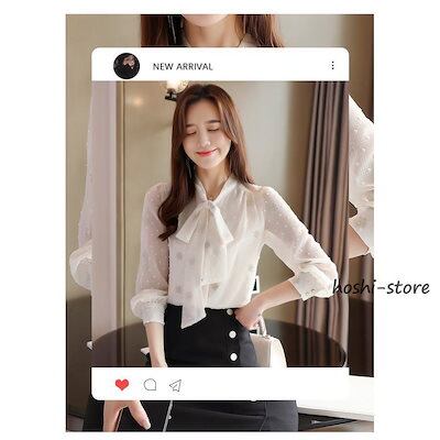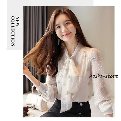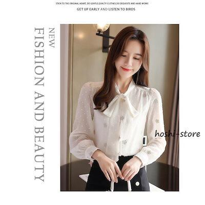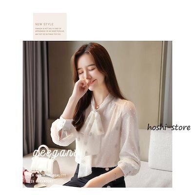 【新作入荷】気質 長袖シャツ ブラウス レディース きれいめ 40代 春夏秋新作 オシャレ白シフォンブラウス 無地シャツ リボンネック 長袖トップス 大人 通勤OL ゆったり シャツ30代 50代
