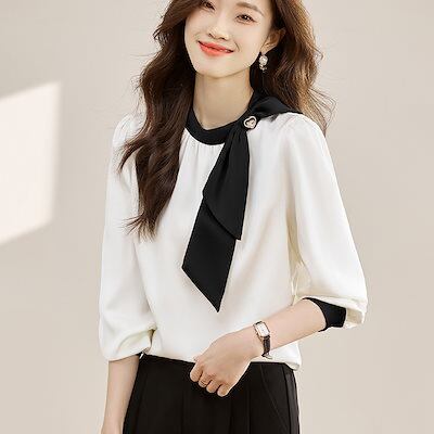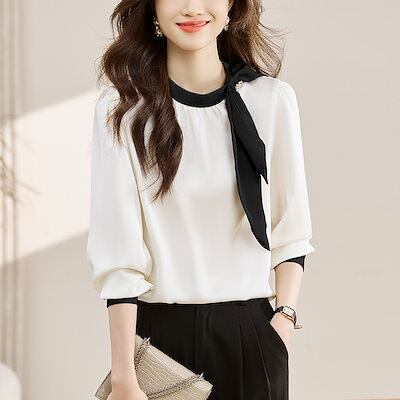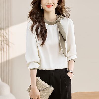 ブラウス フレンチジェントルネックリボンシャツ レディース 2025 春新作 トップス