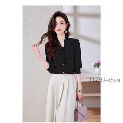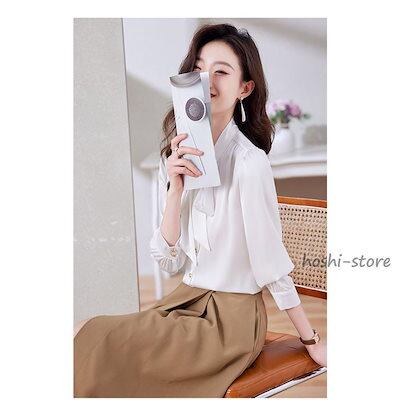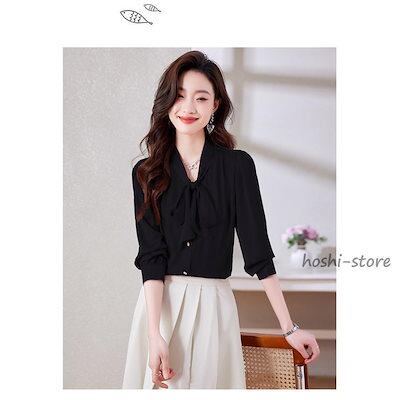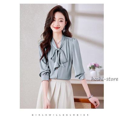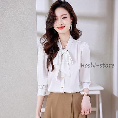 新作ボウタイブラウス フォーマル 長袖 ブラウス リボンブラウス 爽やか 通勤 面接 おしゃれ オフィス カジュアル シフォンブラウス