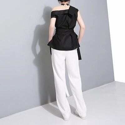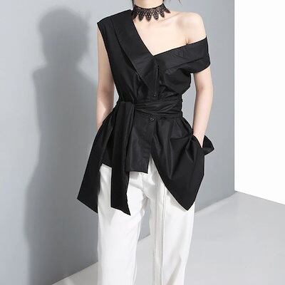 ブラウス レディース 半袖 2025新作夏韓国ファッションデザイン袖結び大リボン不規則な傾斜肩シャツ着痩せシャツ ブラウス 今っぽシアーシャツ