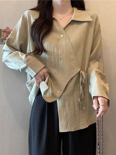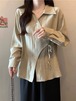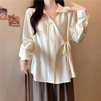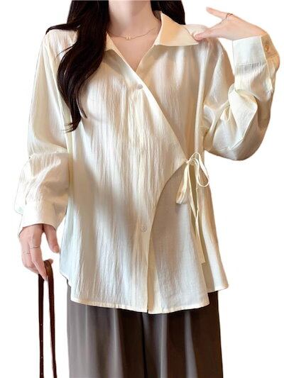 ブラウス デザイン感リボンウエストシャツレディース春長袖シャツトップス