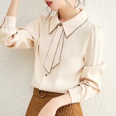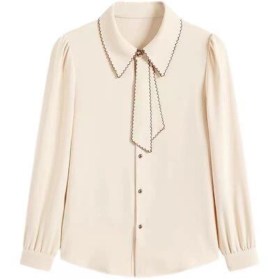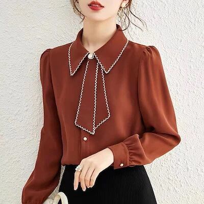 2024 春夏シャツ おしゃれ 通勤 リボン ゆったり シャツ レディース 気質 長袖トップス ブラウス 韓国ファッション