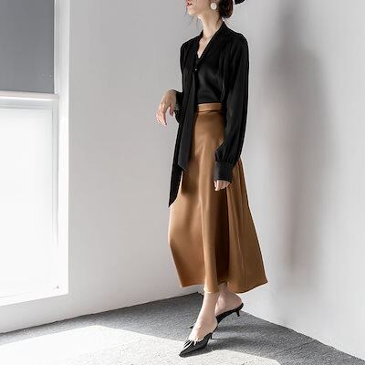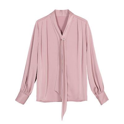 サテンリボン襟長袖シャツレディースシンプル通勤シャツレディース
