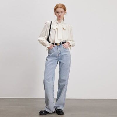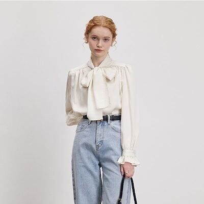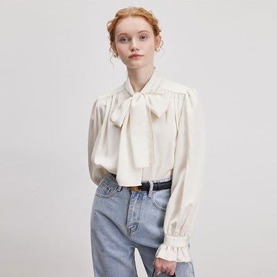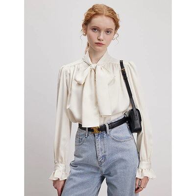 リボン付きブラウスレディース 2024 春 フレアスリーブブラウス 長袖 トップス