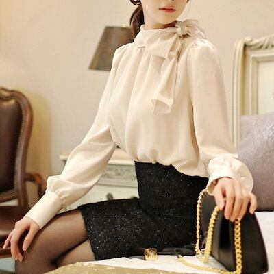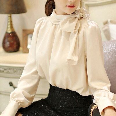 2024 春夏シャツ ボウタイ リボン ブラウス シャツ オフィス レディース 長袖 白 トップスラブリータートルネック ブラウス 韓国ファッション