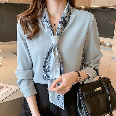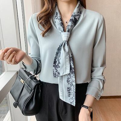 2024 春夏シャツ シアーシャツ 長袖ブラウス/ブラウス シアーシャツ新作リボン気質シャツ レディース通勤長袖レディースファッション ブラウス 韓国ファッション