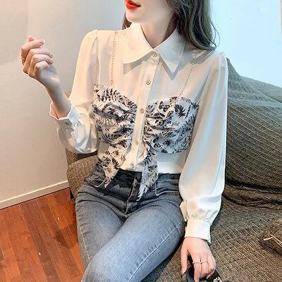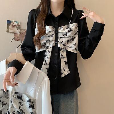 Tシャツ 韓国 カットソー 長袖 ブラウス シフォンブラウス シアーシャツ トップス 体型カバー 大きいサイズ リボン 韓国 シャツ レディース ロングシャツ シースルーシャツ