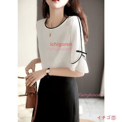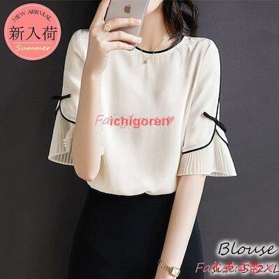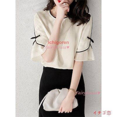 ブラウス レディース 40代 春夏新作 オシャレブラウス 白シャツ 半袖トップス リボン プリーツ切り替え ブラウス 大人上品 通勤OL ゆったり シャツ30代 50代