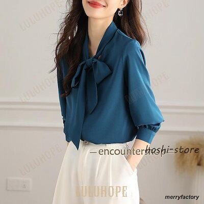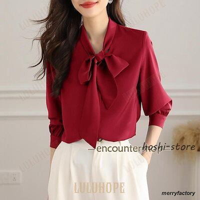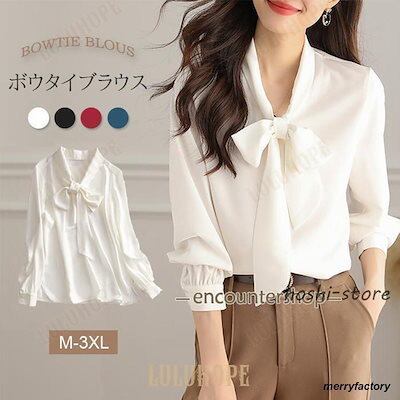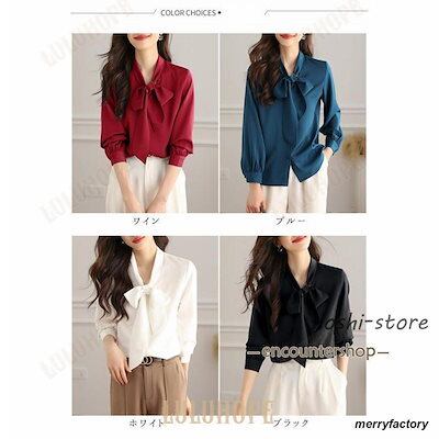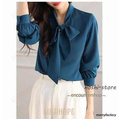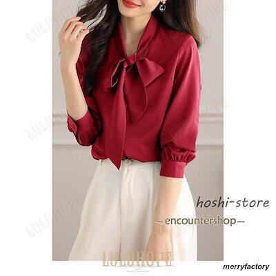 ボウタイブラウス レディース リボン ブラウス トップス シャツ 春 秋 長袖