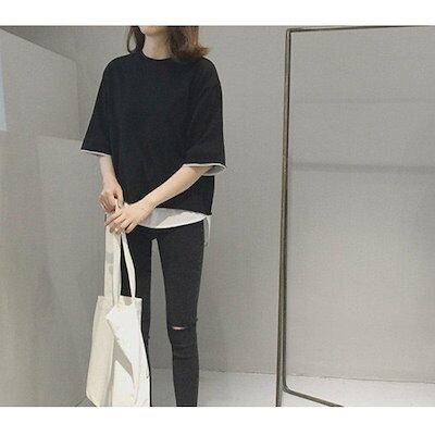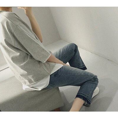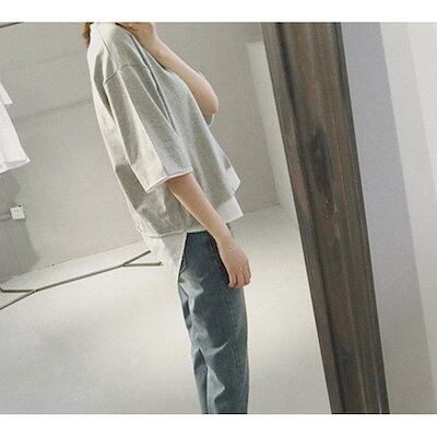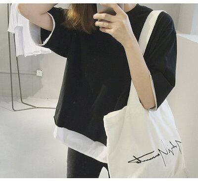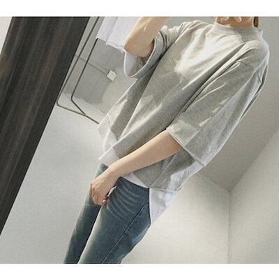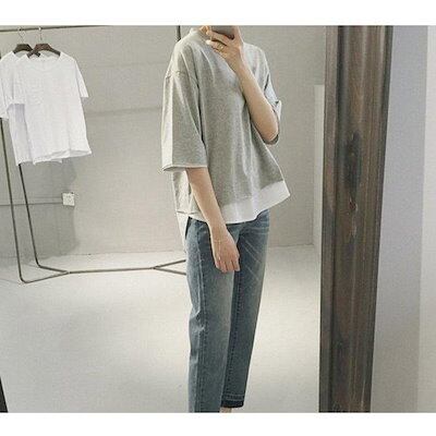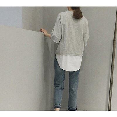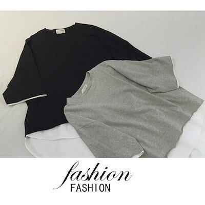 Tシャツ レディース tシャツ 半袖 トップス 重ね着風 無地 シンプル 大人 カジュアル