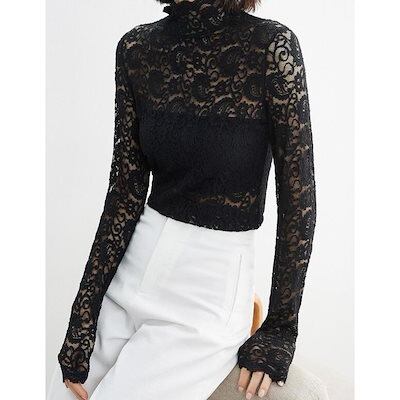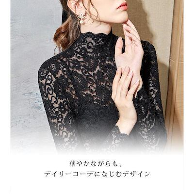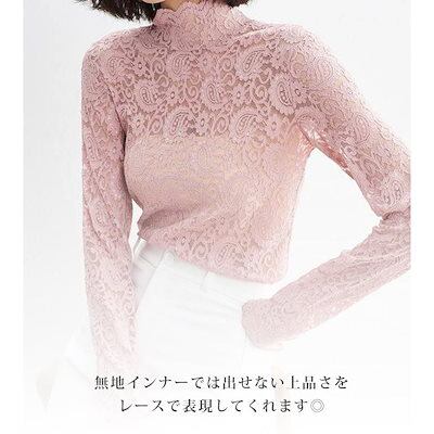 インナーシャツ 透け感 Tシャツ ブラウス レース レディース ハイネック インナー ボトルネック レディース トップス 長袖 セクシー