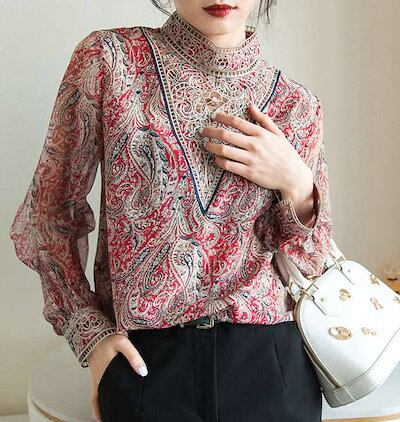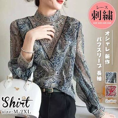 ブラウス レディース レース 刺繍 パフスリーブ 長袖 トップス シャツ 大人 通勤 OL ゆったり オシャレ 春 夏 秋 新