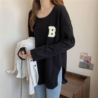 カットソー レディース トップス ゆるTシャツ スリット 長袖 秋 春 夏 インナー 重ね着 レイヤード 薄手 無地 tシャツ シンプル