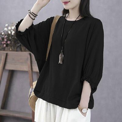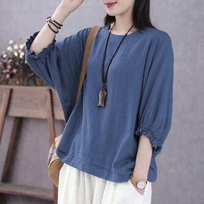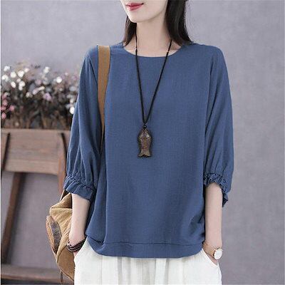 Tシャツ 母の日 レディース 夏 半袖 ブラウス トップス 7分袖 薄手 体型カバー 涼しい uvカット 紫外線対策 ゆったり