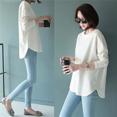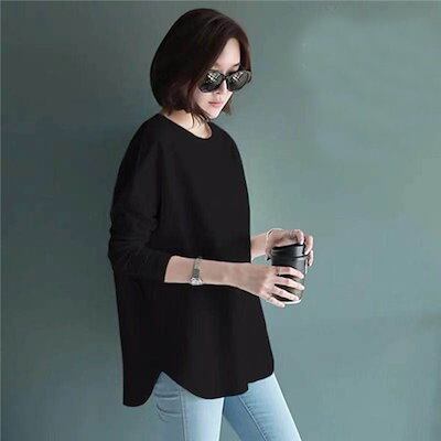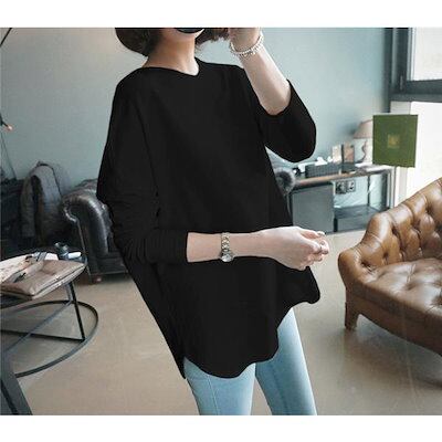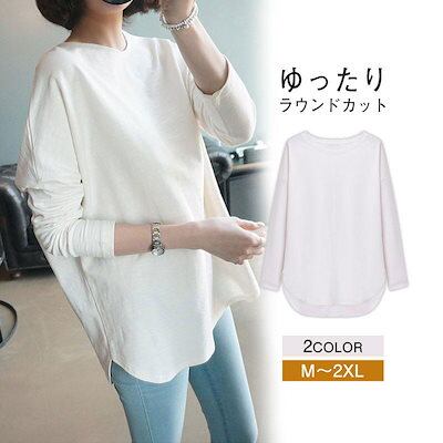 大好評 カットソー ロングTシャツ レディース ゆったり お洒落 おしゃれ ラウンドカット トップス クルーネック 着痩せ ゆるTシャツ