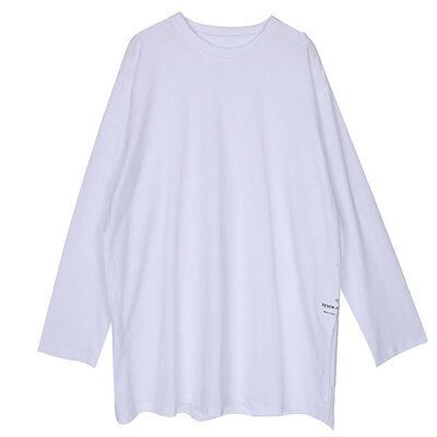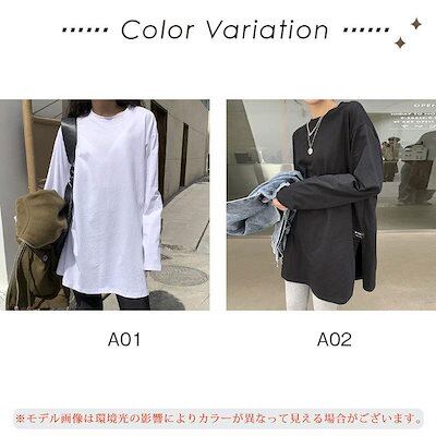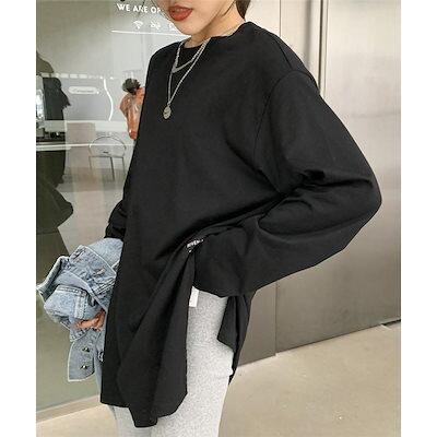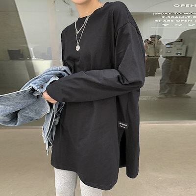 カットソー レディース ロンT トップス Tシャツ プルオーバー サイドスリット 重ね着 レイヤード 長袖 無地 カジュアル ゆったり