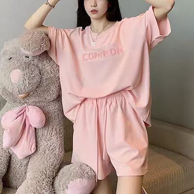 セットアップ ゆったり着やせ半袖Tシャツ スウェット上下セットレディース スウェット 痩せ見え カジュアルスポーツスーツ2点セットおしゃれ