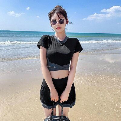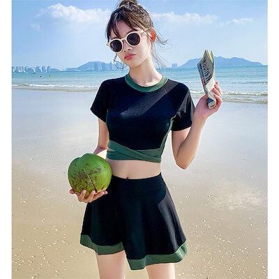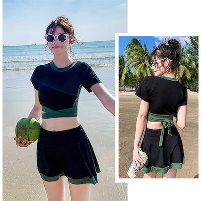 水着 レディース 2点セット 夏 小胸 パレオ 日焼け防止 パッド付き 体型カバー UVカット ママ水着 海水浴 潜水 韓国風 可愛い プール 学生