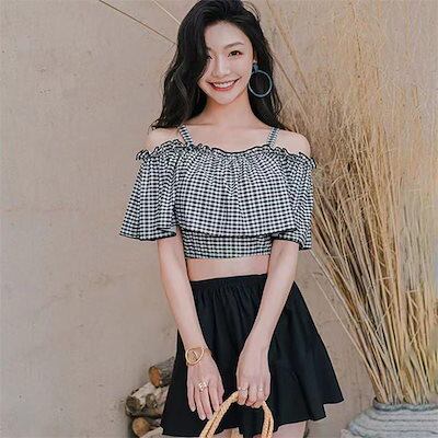 水着 レディース 3点セット セパレート 体型カバー パッド付き 中学生 高校生 UVカット 海水浴 潜水 海ビーチ 韓国風 可愛い 温泉