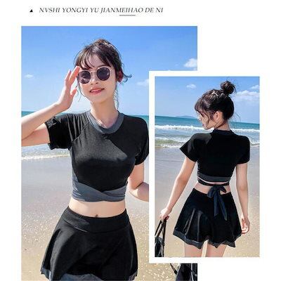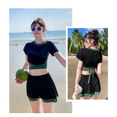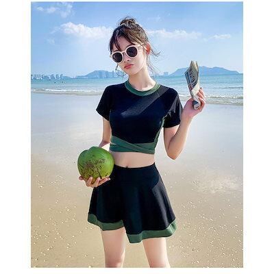 水着 レディース 2点セット 半袖 セパレート 夏 日焼け防止 パッド付き 中学生 高校生 体型カバー UVカット 海水浴 潜水 海ビーチ 可愛い