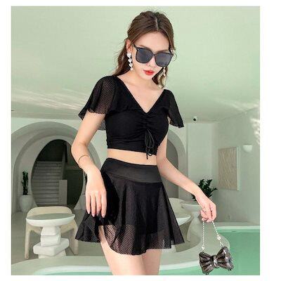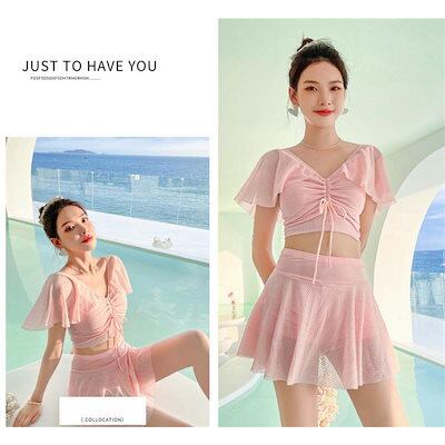 水着 レディース 2点セット ワンピース 体型カバー ビキニ ママ水着 大きいサイズ 可愛い ビーチ シンプル 温泉 海水浴 フリル