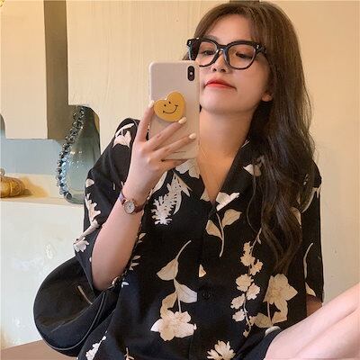 今っぽシアーシャツ ブラウス UVカット 長袖ブラウス さらっと羽織れる:サテンシャツ花柄 新作 可愛い ゆったり 着痩せ トップス デザイン ブラウス
