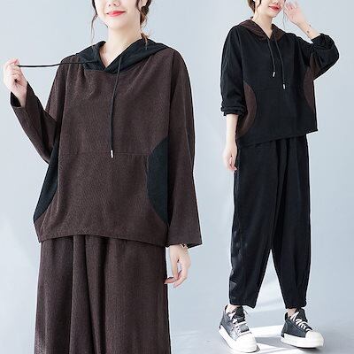2023人気パーカー長袖トップスワイドパンツ上下二点セットアップ韓国ファッションレディース大きいサイズ春服福袋
