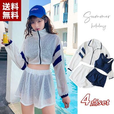 水着 レディース 4点セット ビキニ UVカット体型カバー着痩せ 韓国ファッション可愛い ゆったり Tシャツ中学生 高校生スポーツ スポーティー タンキニ ラッシュガード ワンピース 大きいサイズ