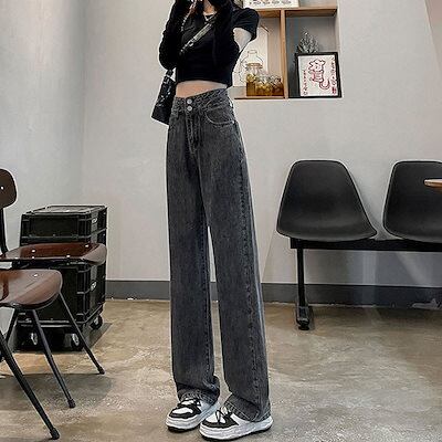ニッチデザインダブルボタンスーパーハイウエストワイドレッグジーンズ 女性の純赤緩い百黒とグレーのストレートドラッグ長いズボン