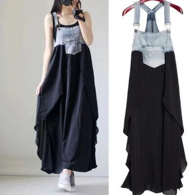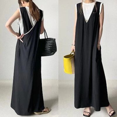 【人気】 夏にぴったり 羽織る 細キャミワンピース 綿麻/デニム 体型カバー 涼しい ロングキャミワンピース デニムキャミワンピース メガ割