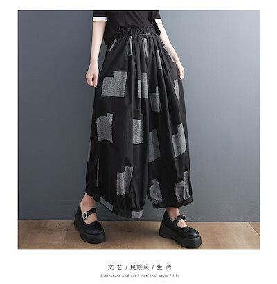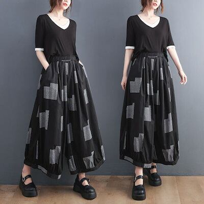 「ファットガール」 夏 九分丈 ワイドパンツ ゴム 体型カバー 大きいサイズ ゆったり レディース