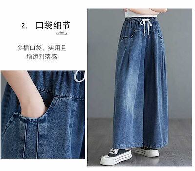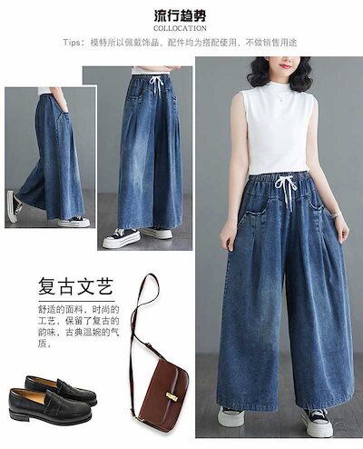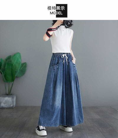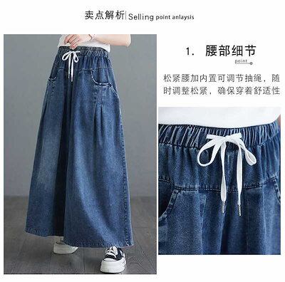 「ファットガール」 2024夏新品 デニムワイドパンツ キュロットスカート フレアー レトロ ゴム ハイウエスト 体型カバー 大きいサイズ ゆったり レディース